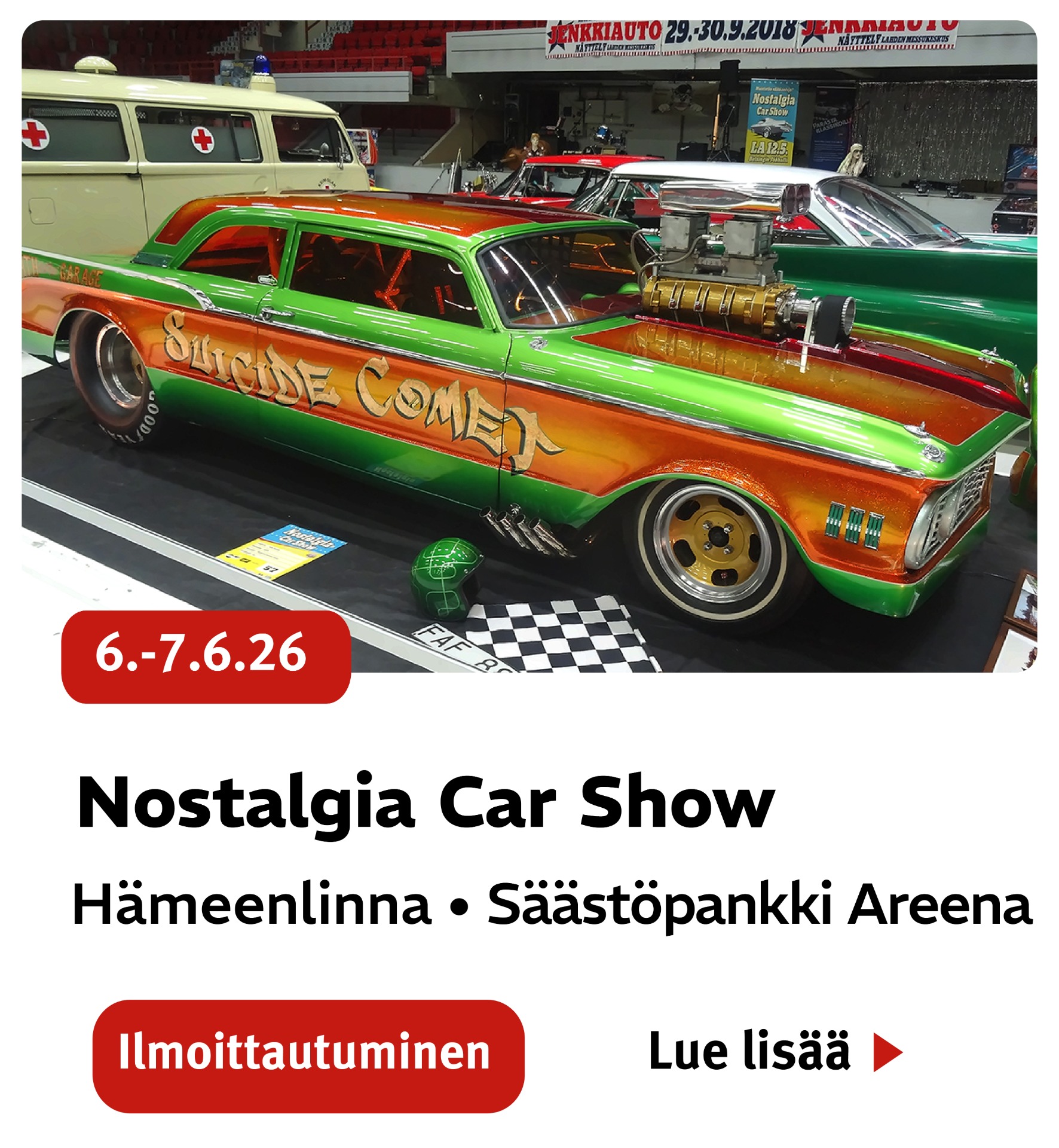 Kesäkuussa Hämeenlinna muuttuu aikamatkaksi 1970–1990-lukujen hot rodding -kulttuuriin. Nostalgia Car Show on harvoin järjestettävä ja sisällöltään ainutlaatuinen harrasteajoneuvonäyttely, joka kokoaa yhteen aikakaudelle uskolliset ajoneuvot, rakentajat, autoseurat ja ilmiöt ajalta, jolloin cruising-kulttuuri ja amerikkalaiset vaikutteet muovasivat suomalaista autoharrastamista pysyvästi.